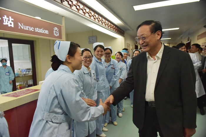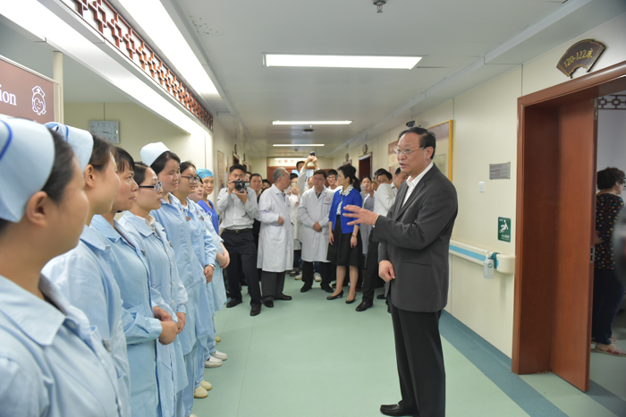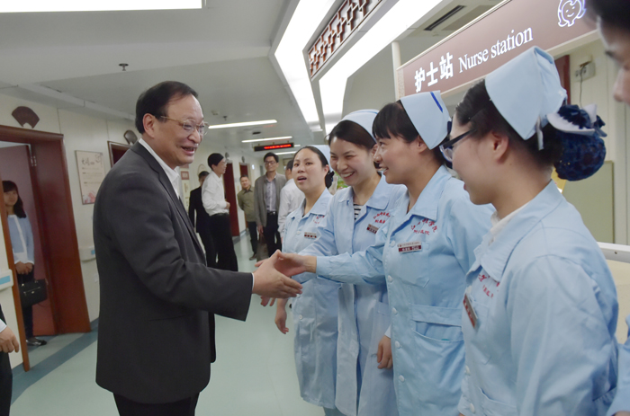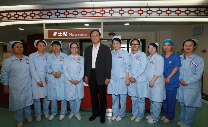 5月8日,国家卫生计生委副主任、国家中医药管理局局长王国强在江西省中医院调研时,慰问了正在值班的护理人员。王国强说,马上就要到护士节了,在这里,我代表国家卫计委、国家中医药管理局,对你们表示节日慰问的祝贺,你们辛苦了。王国强和现场的护士们一一握手,并热情地邀请大家合影留念。