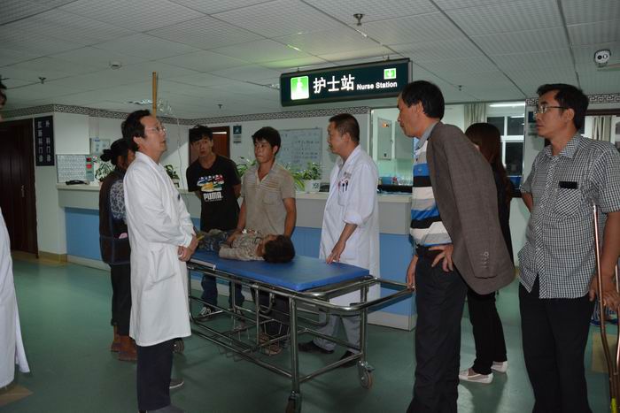 2014年8月5日,省卫生厅郑副厅长、市卫生局唐局长、会泽县卫生局吴局长亲自到会泽县中医医院看望受伤患者,细心慰问患者病情并给患者做心理辅导。