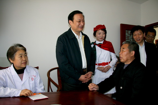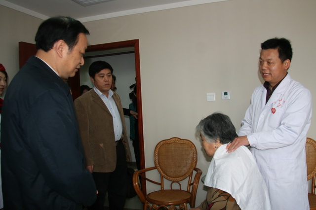4月12日 ,王国强一行兴致勃勃地察看了河南三门峡市中医院竣工使用的新门诊病房楼。并亲切看望了正在出诊的专家,认真地询问他们对诊疗环境的意见。在观看了颈椎病按摩的实例操作后。他询问通过按摩手法治疗效果如何,中医的特色与优势如何发挥?在药浴中心,王国强对市中医院致力于弘扬中医文化、开展中医特色服务的做法表现出浓厚兴趣,一一询问服务内容、收费、患者反映等。他希望市中医院在科室设置和服务内容方面更加突出中医优势,在挖掘中医内涵传承方面更下功夫,探索养生保健康复的新理念,更好地服务广大群众。