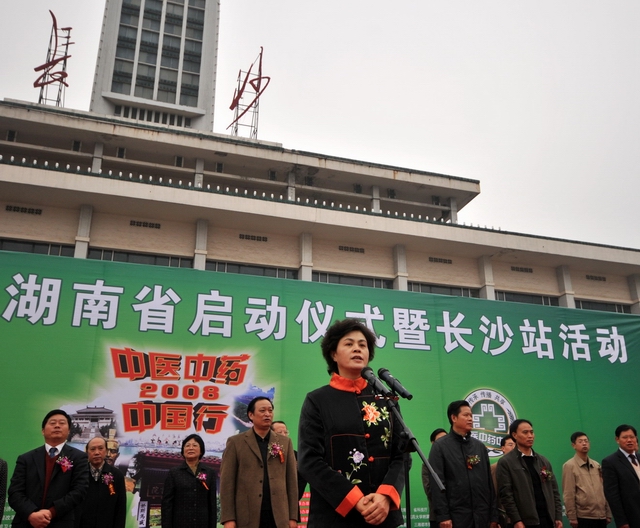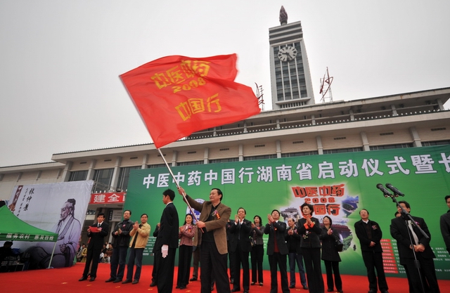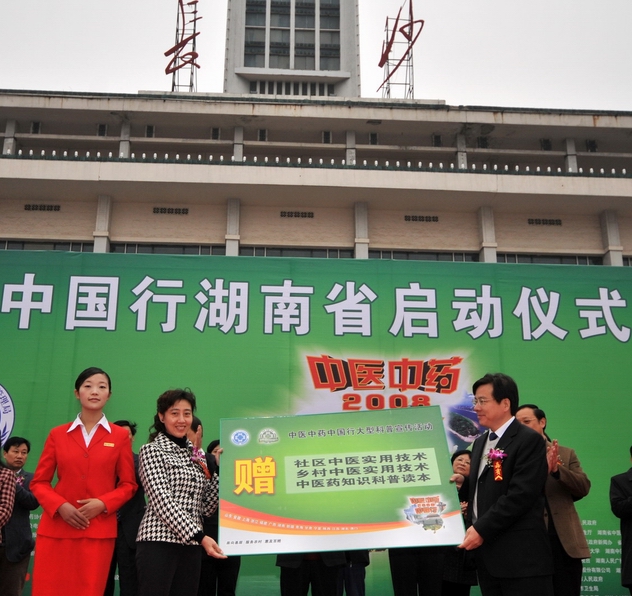 2008年11月22日,“中医中药中国行”湖南省活动在长沙市启动,卫生部副部长兼国家中医药管理局局长王国强出席活动并讲话。全国组委会向湖南省赠送了中医药科普图书和医疗设备。湖南省甘霖副省长宣布"中医中药中国行"湖南省活动启动.。启动仪式上发表了湖南中医药人“弘扬国粹,振兴中医”宣言,即将走进社区的百名中医药博士进行了集体宣誓。活动当天还开展了中医药专家为市民义诊、中医药科普展览展示、资料发放、游戏互动等群众喜闻乐见的多种活动。在未来一周内,"中医中药中国行"活动将在全省14个市州陆续举行,让中医药知识进农村、进社区、进家庭,惠及广大民众。