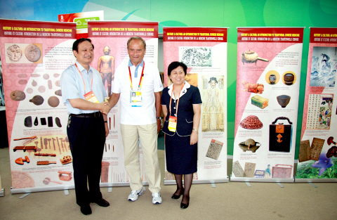 8月15日,应国际奥委会特别要求,北京奥组委和北京市中医管理局在奥运村共同举办了“中国传统医学在运动医学中的预防性应用”研讨会,以满足来自世界各国和地区的运动医学人员进一步了解中医、体验中医的愿望。卫生部副部长、国家中医药管理局局长王国强,北京市中医管理局局长赵静出席研讨会,并将《走进中医——历史与文化》系列展板赠送给国际奥委会医疗委员会主席安·林奎斯特博士。
