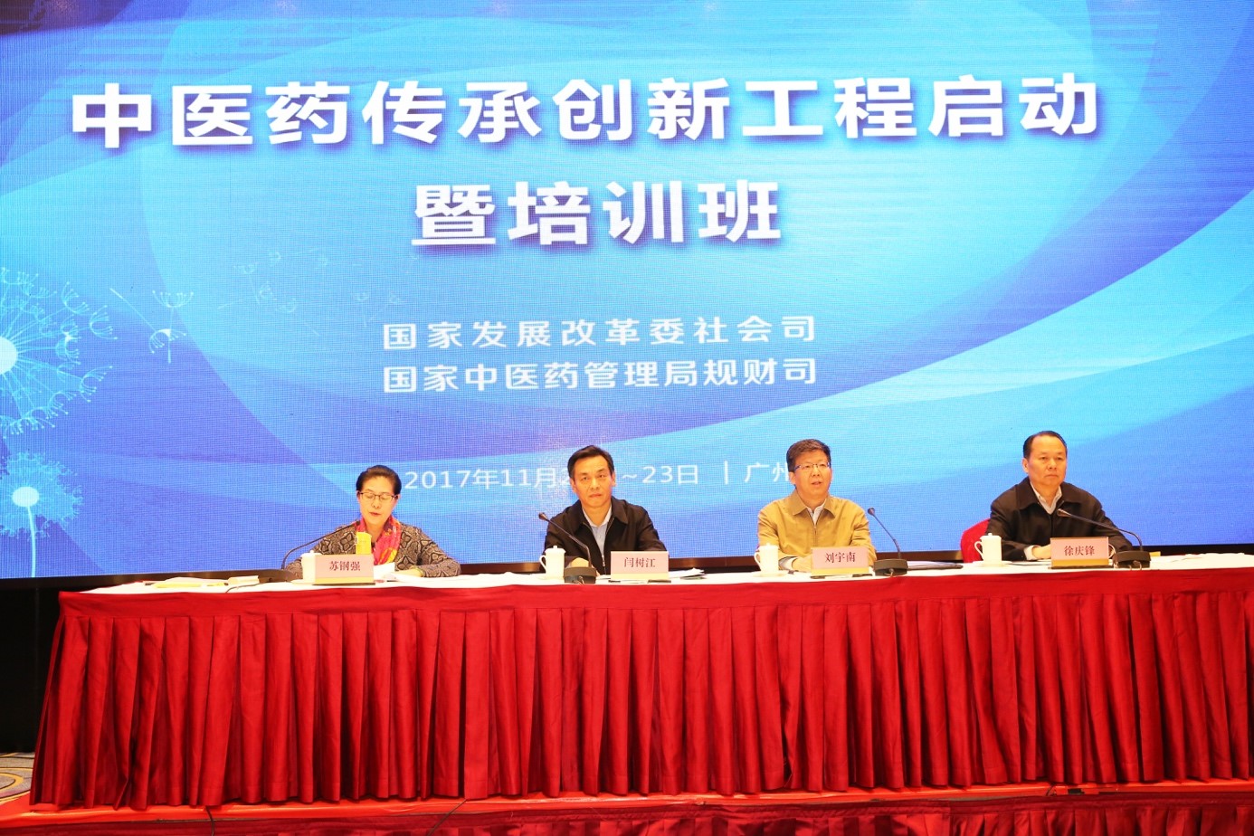 根据《全民健康保障工程建设规划》总体部署和有关要求,国家发展改革委、国家中医药管理局于2017年上半年组织申报并遴选确定了中医药传承创新工程项目储备库,为深化工程内涵认识,全面加强工程建设与管理,保障实现工程建设目标,国家发展改革委社会司、国家中医药局规划财务司于11月22-23日,在广州举办中医药传承创新工程启动暨培训班。国家中医药管理局闫树江副局长受王国强副主任委托出席并讲话。
