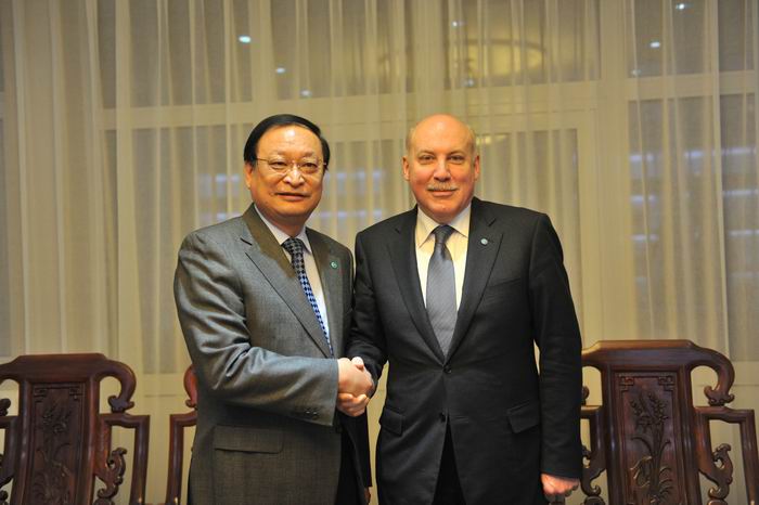 2月10日,应上海合作组织秘书长梅津采夫邀请,国家卫生和计划生育委员会副主任、国家中医药管理局局长王国强回访上海合作组织秘书处,与梅津采夫进行了会谈。