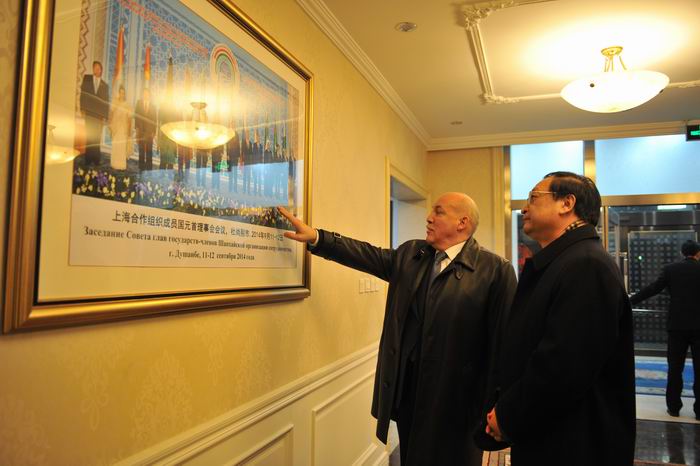 会谈后,梅津采夫饶有兴致地邀请王国强参观了上合组织秘书处,介绍了上合组织的发展历程和成就。