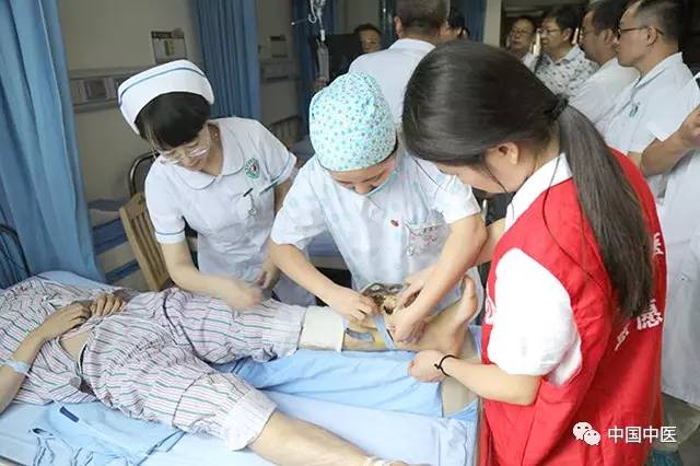 四川省骨科医院对灾伤病员制订了完整精细的治疗方案:在完善各项理化检查的基础上,对非手术伤员,以郑氏手法整复、夹板或绷带外固定,配合郑氏伤科中药内服外敷。对需要手术的伤员,由专家团队精心设计手术方式,运用“围手术期康复—临床康复—功能康复”的三段式康复模式,配合电针、引导式功能锻炼、关节松动、传统关节粘连松解术、推拿等中医治疗手段。