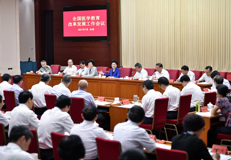 7月10日,全国医学教育改革发展工作会议在北京召开。中共中央政治局委员、国务院副总理刘延东出席会议并讲话。新华社记者 燕雁 摄