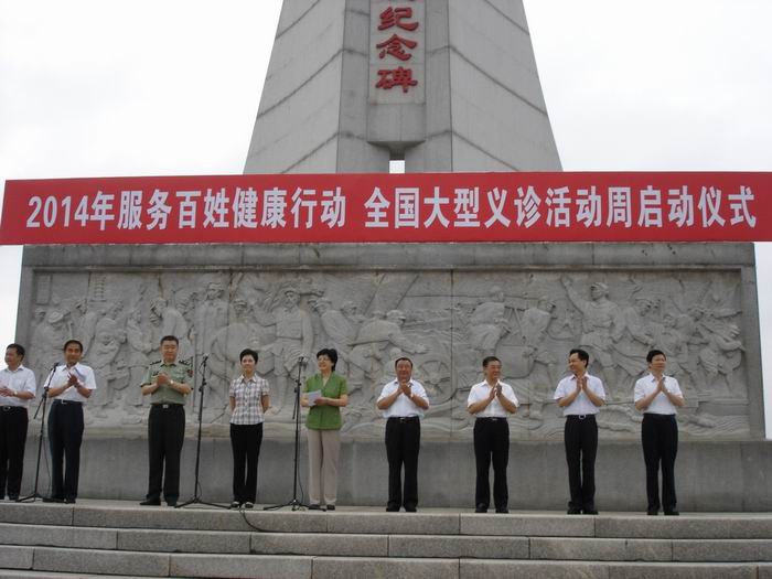9月14日上午,2014年“服务百姓健康行动”全国大型义诊活动周总启动仪式在革命老区、长征出发地——江西省于都县举行。国家卫生计生委主任李斌,江西省委常委史文清、副省长谢茹、国家中医药管理局副局长马建中,解放军总后勤部卫生部副部长李清杰等出席。